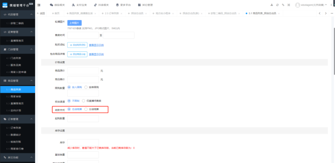 7、抖音:创建商品时,增加收款方式选择,可根据多店或连锁门店属性,选择制定打款账号,更多选择更加便利;