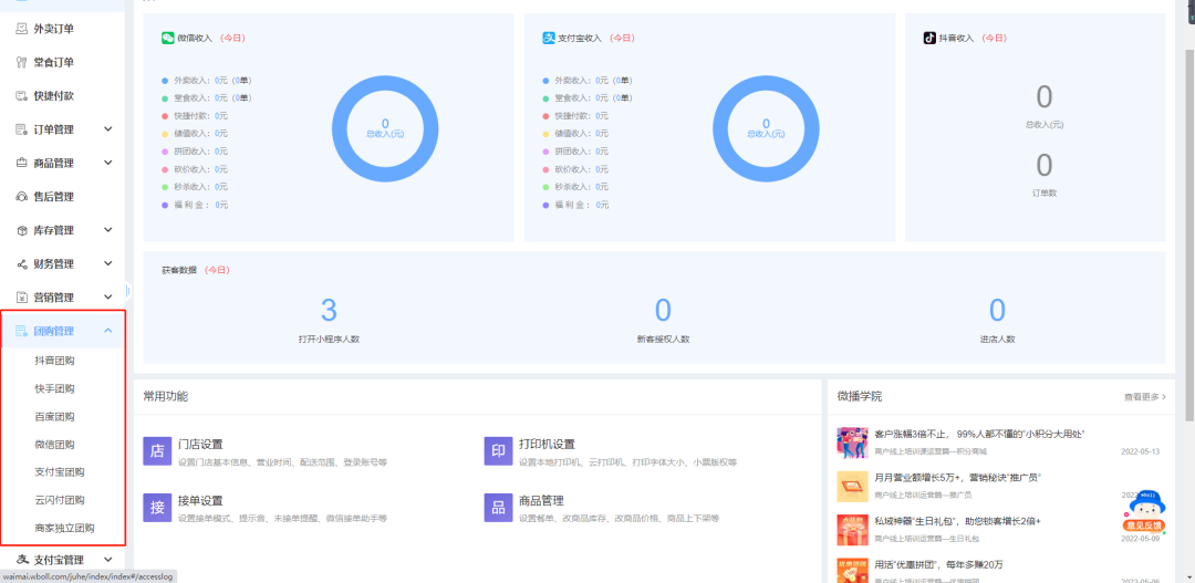 3、门店商户后台:各平台团购功能菜单以合理性排序,更符合操作者的高频使用习惯;