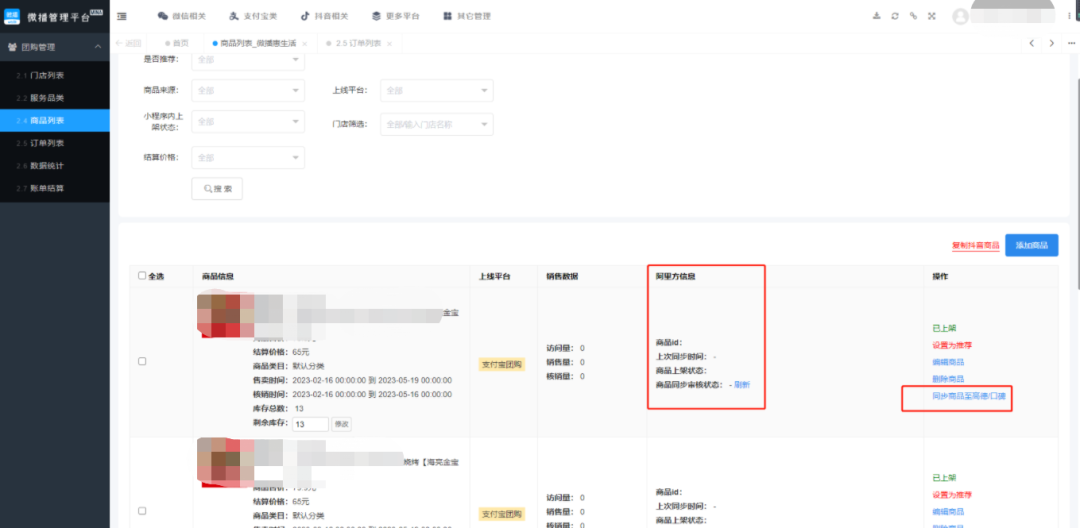 6、高德、口碑、支付宝团购:商品管理流程调整,团购商品信息可一键导入高德平台;